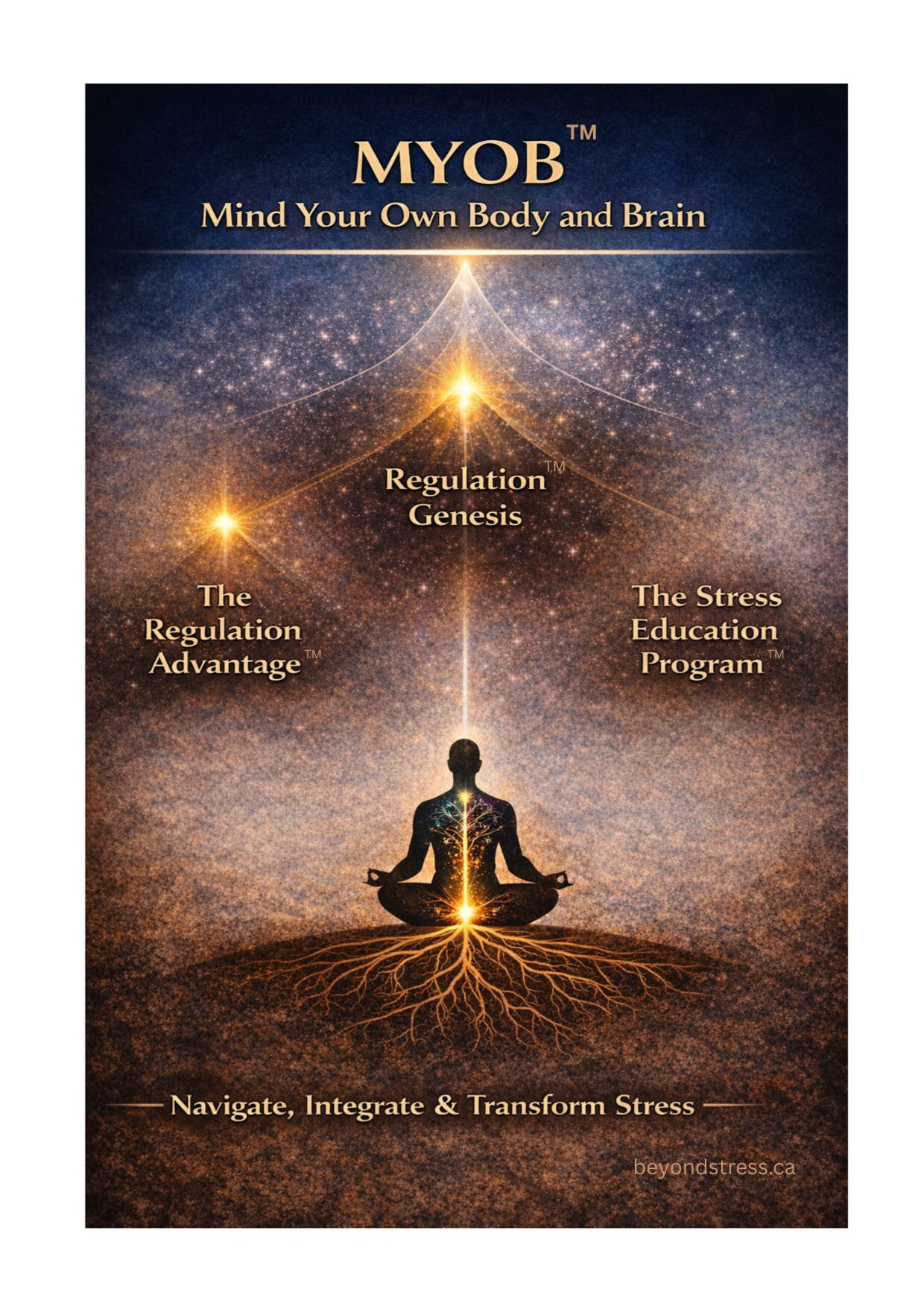 Transforming how we learn, live and thrive.MYOB (Mind Your Own Body and Brain) is an educational framework designed to help individuals understand how their nervous system shapes their thoughts, emotions, relationships, and capacity to thrive.Grounded in neuroscience, lifestyle medicine, and nervous system education, MYOB teaches practical tools that help people recognize stress patterns, regulate their physiology, and build resilience from the inside out.Through the different programs, participants learn how to move from basic awareness of their stress responses to deeper integration, emotional coherence, and meaningful connection.The MYOB ecosystem currently includes three programs:The Regulation Advantage™ for executives, corporations and professionals, Regulation Genesis ™ for the youth and The Stress Education Program™ for education institutions.